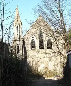 The congregation originally met in the New Society Room which was built in 1741 for George Whitefield and John Cennick after a separation occurred between them and John Wesley.[1] The former Society Room building was expanded to a large size in 1802, and is a Grade I listed building.[2] It is now roofless and derelict after an arson attack.[3]