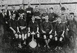 Whiteheads F.C., 1897, with the Dorset League trophy