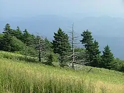 ![]() View southwest towards Whitetop Mountain from the Appalachian Trail on Elk Garden Ridge, within the Mount Rogers National Recreation Area in Smyth County, Virginia | |