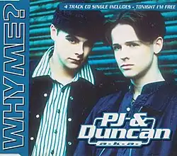 "Why Me?" is a song by British television presenting duo PJ & Duncan, released in April 1994 by Telstar Records as the second single from their debut album, Psyche (1994). The song is written by Deni Lew, Mike Olton and Nicky Graham, and produced by Graham. It was the duo's first single to reach the top 40 on the UK Singles Chart, peaking at number 27.