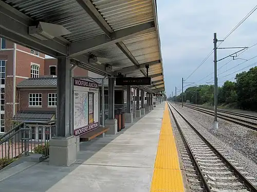 Wickford Junction station is a commuter rail station located in North Kingstown, Rhode Island, United States. It is the southern terminus of the MBTA Commuter Rail Providence/Stoughton Line and serves as a park and ride location for commuters to Providence and Boston. The station consists of a single high-level side platform on a stub-end siding next to the Northeast Corridor mainline.