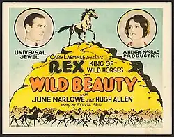 Wild Beauty is a 1927 American silent Western film directed by Henry MacRae and starring Hugh Allan, June Marlowe, and Scott Seaton.[1][2]
