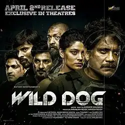 Wild Dog is a 2021 Indian Telugu-language action thriller film written and directed by debutant Ahishor Solomon. Produced by Matinee Entertainment, the film stars Nagarjuna Akkineni, Dia Mirza, Saiyami Kher, and Atul Kulkarni.[4] The film includes many terrorist incidents in India, including the Gokul Chat bomb blast in 2007 and the capture of Yasin Bhatkal.[5] Wild Dog released theatrically on 2 April 2021 to positive reviews.[6][2][3]