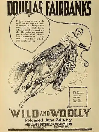 1. ^ "Reviews: Douglas Fairbanks in Wild and Woolly". Exhibitors Herald. 5 (1). New York City: Exhibitors Herald Company: 25. June 30, 1917. Retrieved November 6, 2014.