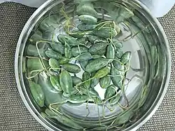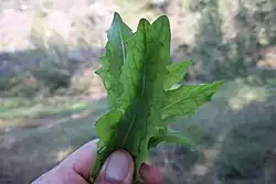 Cichorium endivia (C. pumilum) Dwarf chicory (Arabic: ʻilt; ʻilk; ʻilsh; hindeba; sikōria) Young tender leaves chopped and fried with onions and garlic, and a pinch of salt. Cooked with lentils. Eaten fresh as a salad with beets and lemon juice.[54][55] C. endivia (syn. C. pumilum) is the only chicory native to the country,[56] and is numbered among the bitter herbs that can be eaten by Israel during the Passover ritual.[57] The larger the leaves grow, the bitterer they become. Best when picked in the early Spring before the plant blossoms. The Arab population of Galilee have traditionally used it in stuffed foods. Roasted chicory roots have been used as a substitute for coffee.[58]