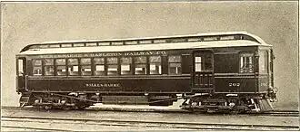 The charter for the Wilkes-Barre and Hazleton Railroad was granted on November 7, 1892. The railroad was incorporated in New Jersey in 1899. The railroad obtained a New Jersey charter on May 8, 1901. The railroad's power, generating station, sub-stations, and transmission lines were designed by the General Electric Company. In 1921, the PPL Corporation started to do the job of powering the railroad instead, as part of an attempt for the railroad to reduce its expenses.[1] The railroad stopped bringing in profit in the middle of the 1920s.[3] The railroad company defaulted its bonds in 1929. Henry S. Drikard, a businessman from Philadelphia, bought the Wilkes-Barre and Hazleton railroad company for $165,000 in February 1930. Briefly in 1932, several railbusses were used on the railroad. All service on the railroad stopped on September 17, 1933, following a ruling from the Pennsylvania Public Utility Commission, and power to the rail line was removed on October 3, 1933, after a final attempt to save the railroad from bankruptcy.[1]