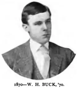Buck was the son of John M. and Mary B.[1] and had a sister. His university preparation was at St. Timothy's Hall in Catonsville, Maryland, and his undergrad study was at Princeton University, where he graduated in 1870. He then did post-graduate study in medicine for two years at the University of Maryland. He was a Presbyterian and did not marry.[2]