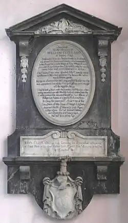 - John Clevland (1706–1763),[9] eldest son and heir, of Tapeley, Secretary to the Admiralty. On the monument he erected to his father following his death in 1734 he referred to himself as "his only surviving son".