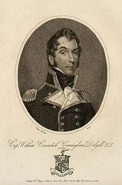 Sir William Cunningham Dalyell of the Binns, 7th Baronet (27 April 1784 – 16 February 1865) was an officer in the British Royal Navy who served in the French Revolutionary Wars and in the forces under Sir Sidney Smith that operated along the French and Dutch coasts during the Napoleonic Wars.[1] Born on 27 April 1784 in Linlithgowshire, Scotland, his father was Sir Robert Dalyell of the Binns, 4th Baronet, an officer in the British Army. William inherited the title 7th Baronet of the Binns in 1851 when his brother died inheriting the House of the Binns.