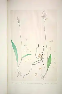 "The greater part of the plants herein described were collected by the Rev. Wm. Deans Cowan in the east and centre f the island during the past few years. Mr. Cowan's attention, among plants, was especially directed to the Orchideae, of which, besides dried and spirit-specimens, he has brought home a good collection of coloured drawings, of no small value in a group of plants so difficult to preserve as Orchideae. In addition to these plants, I have added notes or descriptions of interesting plants from the collections of the late J. M. Hildebrandt, and of Hilsenberg and Bojer.All the plants, except where otherwise stated, are in the herbarium of the British Museum at South Kensington".Ridley, H. N. (1883). Descriptions and Notes on new or rare Monocotyledonous Plants from Madagascar