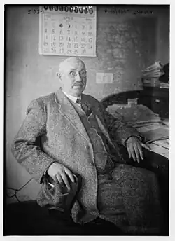He gained the nickname "Pussyfoot" due to his cat-like stealth in the pursuit of suspects in the Oklahoma Territory.[1] Newspapers in Muskogee, Oklahoma referred to him as “the gent with the panther tread,” which led to "Pussyfoot." Johnson said that he wore rubber heels on his shoes.[2]