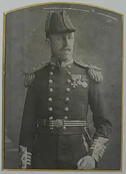He was naval ADC to Kings Edward VII and George V, 1909-1910, was promoted to rear-admiral in 1911, and retired from the navy in 1913. He served as a captain in the Royal Naval Reserve's Yacht Patrol, 6 March 1915 – 1916;[7] Vice-Admiral, Head of Mission to Portugal, 9 June 1916.[8] He served on the following: HMS Russell; HMS Jupiter; HMS Revenge; HMS Gladiator; HMS Blake; HMS Juno; HMS Mersey; HMS Scout; HMS Haughty; and HMTB 87.[9]
