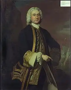 Gordon served at the Battle of Louisbourg in June 1758 and at the Capture of Quebec in September 1759 during the Seven Years' War. He went on to be commanding officer of the second-rate HMS Blenheim in July 1761.[2] Appointed a commodore, he became Commander-in-Chief, The Nore in April 1762.[3] He was promoted to rear-admiral of the white and is buried at St Mary's Kirkyard in Banff.[4]