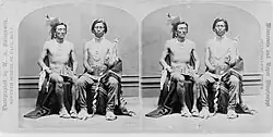 A stereocard of two Winnebago men photographed by William H. Illingworth.