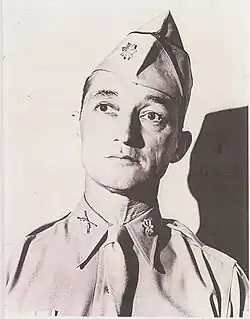 O'Brien joined the Army from his birth city of Troy, New York, and by June 20, 1944, was serving as a lieutenant colonel in the 1st Battalion, 105th Infantry Regiment, 27th Infantry Division. On that day, on Saipan in the Marianas Islands, he braved enemy fire to reach several American tanks which were unknowingly firing on their own troops. The next week, on June 28, he oversaw and personally led an attack on a Japanese held ridge. On July 7 his battalion came under attack from a much larger enemy force, the largest banzai charge of the Pacific War. He refused to leave the front lines even after being wounded and continued to rally his men until being overrun and killed. He was posthumously awarded the Medal of Honor on May 9, 1945, for his actions throughout the battle for Saipan.[1]