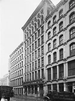 • Jayne Building, 242–44 Chestnut St., Philadelphia, PA (1849–50, demolished 1957) (completed by Thomas U. Walter).[7] Charles E. Peterson argued that Johnston's 129-foot-tall (39 m) building was a proto-skyscraper, and influenced the Chicago architect Louis Sullivan, who worked directly across the street from it in the office of Frank Furness. Peterson's efforts to save the building were unsuccessful; it was demolished in 1957 in the creation of Independence National Historical Park.[8]