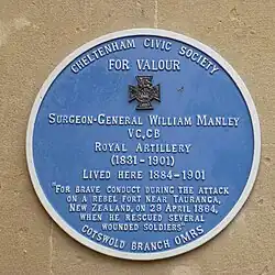 - ^ "William George Nicholas Manley, C.B., V.C., M.R.C.S. Eng". The Lancet. 2 (4082): 1459. 23 November 1901. doi:10.1016/S0140-6736(01)74223-7.