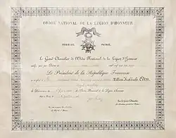 He was made a Companion of the Order of Saint Michael and Saint George on 14 June 1917,[17] and was also awarded the Legion of Honour at the rank of Officier on 1 May 1917.[18]