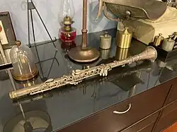 Other innovations helped continue the company's growth. They produced their first cylindrical, solid-silver piccolo in 1916, followed by the first A-flat piccolo in 1917, for use in American military bands.[5] Briefly, beginning in 1926 and ending in 1942, Haynes experimented with making silver clarinets. They were known as "thermoclarinets" as they allowed the player to quickly and easily warm the instrument for tone changes.[10] The company produced a total of 334 silver clarinets.[11][5] That same year, they produced the first conical bore piccolo.