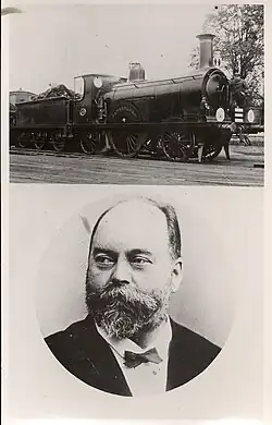 Born at Sandford-on-Thames, Oxfordshire, William Stroudley began work in 1847 at the local paper mill and in the same year he was apprenticed to John Inshaw's engineering firm in Birmingham. Over the next seven years he gained a variety of engineering experience on stationary engines and steam barges.[1] From 1854 he trained as a locomotive engineer at Swindon Works under Daniel Gooch of the Great Western Railway, but soon moved to the Great Northern Railway under Charles Sacré at their Peterborough workshops, later becoming running foreman at the motive power depot there. In 1861 he was appointed manager of the Edinburgh and Glasgow Railway Cowlairs Works. On 19 June 1865 he was appointed locomotive and carriage superintendent of the Highland Railway at Inverness. He was unable to do any substantial work as the railway had very little money at the time, only producing one locomotive. He was however able to re-organise and modernise the company's Lochgorm Works and reduced the operating costs for the railway's existing fleet.[1]