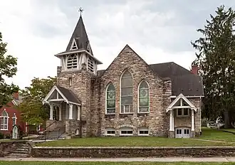 Notable non-residential buildings include the Schwab Hotel (c. 1910), the Hollidaysburg Trust Company (1873), the Presbyterian Church (1841), Zion Lutheran Church (1907), the Church of the Brethren (1911), Williamsburg High School (1918), and the Community Elementary School building (1941). Also located in the district are the Presbyterian (c. 1824), Methodist (c. 1831), Lutheran (c. 1835), and Lutheran and German Reformed (c. 1804) cemeteries, Big Spring, and the Pennsylvania Main Line Canal and Pennsylvania Railroad right-of-way.[2]