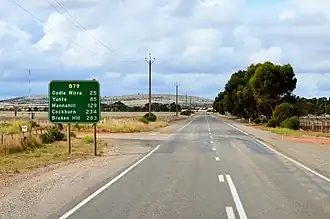 Ucolta99.762.0 Barrier Highway (A32) – Giles Corner, Burra, Broken HillEastern terminus of Petersburg Road and route B79