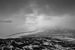 The Wilson Piedmont Glacier extends along the coastal plain of the west coast of the Ross Sea from Granite Harbor south to McMurdo Sound. Most of its input is from direct precipitation, but it receives some inflows from alpine glaciers. It has a broad dome with a divide near the McMurdo Dry Valleys. Most ice flows east to the Ross Sea, where the glacier terminates and comes afloat in the sea along its eastern margin. Some ice flows west and contributes to the Wright Lower Glacier and the Victoria Lower Glacier. In the past there was more westward flow than at present.[2]