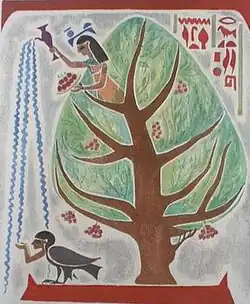 Hathor in the Sacred Fig Tree, white line color woodcut, 1984–85