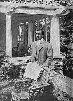In 1898, Churchill commissioned Charles Platt to design a mansion in Cornish, New Hampshire. Churchill moved there the following year and named it Harlakenden House. From 1913 to 1915, he leased it to Woodrow Wilson, who used it as his summer residence. Churchill became involved in the Cornish Art Colony and went into politics, winning election to the state legislature in 1903 and 1905.[3] In 1906, he unsuccessfully sought the Republican nomination for governor of New Hampshire. In 1912, he was nominated as the Progressive candidate for governor but did not win the election and did not seek public office again. In 1917, he toured the battlefields of World War I and wrote his first non-fiction work about what he saw.
