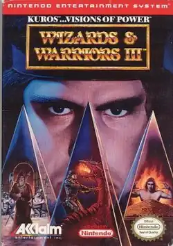 Wizards & Warriors III: Kuros – Visions of Power is a platforming and adventure video game for the Nintendo Entertainment System (NES). It was developed by UK-based company Zippo Games for Rare; it was published by Acclaim Entertainment and released in North America in March 1992 and in Europe on January 21, 1993. It is the third and final installment in the Wizards & Warriors series and is the sequel to the 1989 title Ironsword: Wizards & Warriors II; it also follows the 1990 Game Boy release Wizards & Warriors X: The Fortress of Fear.
