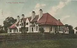 Mary, the Duchess of Bedford (1865–1937) developed an interest in nursing whilst at school in Cheltenham, and in 1898 opened a cottage hospital at Woburn, the Bedford family country estate.[1] Although the Duchess attended ‘a course of lectures at the London Hospital’ as part of her preparation to run the hospital, she does not appear to have undertaken formal training whilst there.[1][2] During the Duchess's attendance at The London Hospital she got to know Sydney Holland, the hospital chairman, who reputedly ‘greatly stimulated her interest in hospital work.’[1] Subsequently, a series of London hospital trained nurses were matron of the hospital from 1898 until at least 1916.[2] At any one time, up to three London Hospital trained nurses also worked there, often initially seconded from the hospital's Private Nursing Institution, which was run by Eva Lückes.[2] During the First World War the Duchess turned it into a Military War Hospital.[3] The hospital remained open until at least 1935.[1]