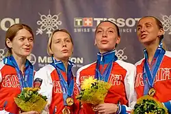 | Gold | Tatyana Andryushina Violetta Kolobova Anna Sivkova Yana Zvereva |