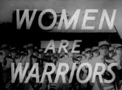 Women Are Warriors is a 14-minute 1942 Canadian documentary film, made by the National Film Board of Canada (NFB) as part of the wartime Canada Carries On series, and dealt with women in war.[1] The film was produced by Raymond Spottiswoode and written and directed by Jane Marsh.[2] The film's French version title is Les Femmes dans la mêlée.