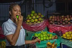 Female child labour in Nigeria refers to the high incidence in Nigeria of girls aged 5–14 who are involved in economic activities outside education and leisure.[55] The prevalence of female child labour in Nigeria is largely due to household economic status,[56] but other factors include: the educational status of parents, the presence of peer pressure, and high societal demand for domestic help and sex workers.[57] Additionally, in many rural and Muslim communities in Northern Nigeria, children are sometimes asked to aid religiously secluded women or mothers in running errands.[58]