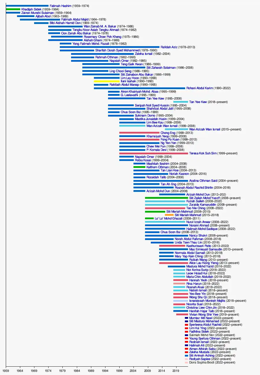 Rodiyah SapieeSiti Aminah AchingAiman Athirah SabuHalimah AliRodziah IsmailYoung Syefura OthmanFadhlina SidekLim Hui YingSyerleena Abdul RashidSiti Mastura MohamadMumtaz Md NawiVivian Wong Shir YeeHanifah Hajar TaibChristina Liew Chin JinNoorita SualIsnaraissah Munirah MajilisWong Shu QiYeo Bee YinNatrah IsmailRina HarunHannah YeohMaria Chin AbdullahLeow Hsiad HuiNor Azrina SuripMastura Mohd YazidAlice Lau Kiong YiengRubiah WangMary Yap Kain ChingNormala Abdul SamadMas Ermieyati SamsudinKasthuriraani PattoLinda TsenNorah Abdul RahmanNancy ShukriChua Soon BuiHalimah Mohd SadiqueNoraini AhmadNurul Izzah AnwarLo' Lo' Mohd GhazaliSiti Mariah MahmudSiti Mariah MahmudTeo Nie ChingZuraida KamaruddinFuziah SallehSiti Zailah Mohd YusoffAzizah Mohd DunAzizah Mohd DunRosnah ShirlinTan Ah EngAzalina Othman SaidNoriah KasnonTan Lian HoeMashitah IbrahimNapsiah OmarTeresa KokChew Mei FunNg Yen YenFong Po KuanKhamsiyah YeopChong EngWan Azizah Wan IsmailWan Azizah Wan IsmailChua Soon BuiShahrizat Abdul JalilSeripah Noli Syed HussinTan Yee KewTan Yee KewRohani Abdul KarimSiti Zaharah SulaimanNapsiah OmarZaleha IsmailRafidah AzizAishah GhaniRosemary Chow Poh KhengFatimah Abdul MajidZainon Munshi SulaimanKhadijah SidekFatimah Hashim