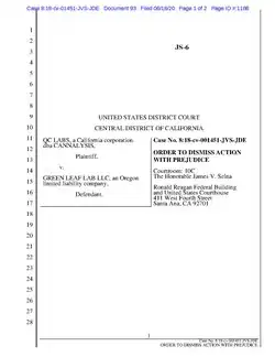 In 2019, Green Leaf Lab filed a complaint ending in a legal battle that became part of a critical issues around the need to protect proprietary lab procedures and issues of transparency around the emergent cannabis industry's regulatory standards in analytical chemical testing of cannabis potency.[19][20][21] Accusations of improriety were dismissed in U.S. California Central District Court. (see thumbnail for Order to Dismiss with Prejudice).