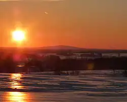 Looking southeast across Wood County from the Marshfield moraine at Nasonville, with Powers Bluff in the middle and a plume from a paper mill at Rapids or Nekoosa on the right, almost at the far end of the county.
