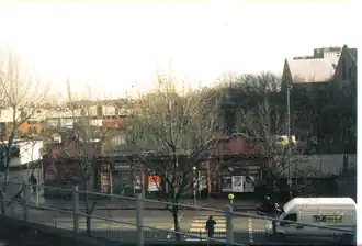 The former site of Wood Lane is now occupied by the Westfield London bus interchange. At left, the brick building is the line's former power station.