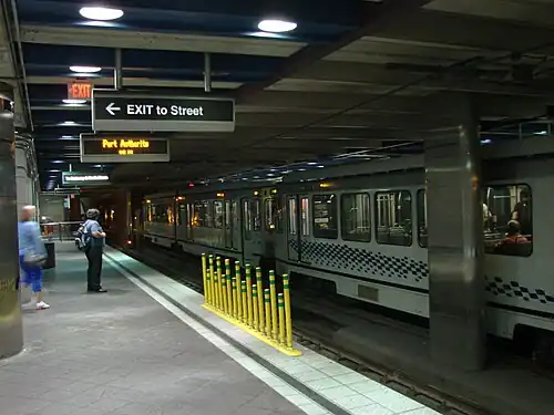 Wood Street station is a station on Pittsburgh Regional Transit's light rail network, located in Pittsburgh, Pennsylvania. It serves the city's Downtown district and is located at the intersection of Wood Street and Liberty Avenue.[4] Passengers embarking at the Wood Street station may travel free to any of the other stations in the Downtown area– First Avenue, Steel Plaza, Gateway, North Shore and Allegheny. Wood Street Galleries, an art gallery, is located directly above the station entrance. The station itself plays no role in fare collection, which is done on board the train.