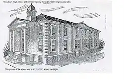 Construction of the high school's early, main academic building began in 1907 on twelve acres of land. Members of the Woodlawn community raised the needed funds for the project themselves without government assistance. The building opened to students on January 19, 1909. Two additional classrooms and an auditorium were added to the building in the 1930s. Four additional classrooms were added to house elementary grades in the early 1950s.[9]