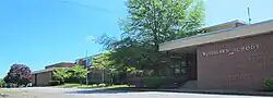 Front entrance of Woodlawn School, Spring 2019.