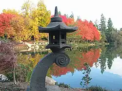 The Shinzen Friendship Garden, also known as the Shinzen Japanese Garden is a 5-acre Japanese stroll garden.[9] The Garden was planned around the four seasons, with distinctive plantings in each area.[8] The spring section features Azaleas, Camellias, crabapples, irises, flowering cherries and plums. A paved pathway connects visitors to the summer section, in which a Koi Pond is the centerpiece. Tulip trees, Chinese pistache and tallow trees are planted in the Autumn Section, where they display bright colors in the fall. A large waterfall, pines and evergreens anchor the Winter Section.[8]