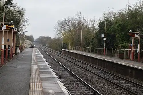 The service in each direction between Kidderminster and Stratford-Upon-Avon via Birmingham Snow Hill and Stourbridge Junction runs hourly every day including Sunday.[3][4] Until the May 2023 timetable change it was a request stop, meaning that passengers wishing to board a train here needed to signal their intent to board to the driver, and that those wishing to alight here needed to inform the train conductor.[5]