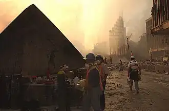 Having survived the September 11 attacks, the sculpture was demolished during subsequent emergency efforts to access and clear the site.[2][3]