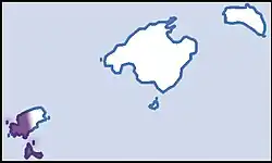 This species is endemic to Spain, where it occurs on the Balearic islands of Ibiza and Formentera and their surrounding minor islands.[1][3][4]