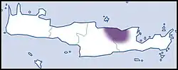 This species is endemic to Greece, where it occurs in northern Crete, from Tombrouk, east of Iraklion, in the west to the Lasithi Plateau in the east.[1][3][4]