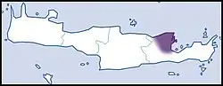 This species is endemic to Greece, where it is restricted to the central-east part of Crete, the region north-east of the Dikti mountains, from Sisi to Agios Nikolaos.[1][3][4]