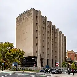 In 1946, the Yale School of Public Health received its inaugural status as an accredited "school of public health." Because of this accreditation, Yale is in a unique situation of assuming the identities of both a department of the Yale School of Medicine and an autonomous school of public health. In the 1960s the Yale Department of Public Health merged with the section of epidemiology and preventive medicine, a unit within the department of internal medicine at the medical school, resulting in the department of epidemiology and public health (EPH). In 1964, EPH moved into its own building, the Laboratory of Epidemiology and Public Health (LEPH), which was designed by Philip Johnson and continues as the primary location for teaching and research.[2]