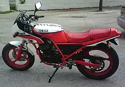 In an attempt to repeat the success of the SR500, Yamaha placed a more modern engine derived from the XT600 into a light, sporty street bike. While still being an air-cooled, overhead-camshaft single-cylinder like its predecessor, the new engine featured a four-valved cylinder head, a two-staged carburetor, a balance shaft, and various improvements. The chassis was a lightweight steel frame with alloy wheels, a double disc brake on the front- and a single disc brake on the rear wheel.