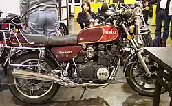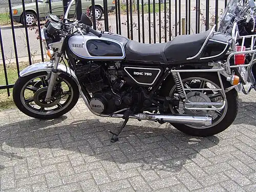 The Yamaha XS750 and XS850 was a line of inline three cylinder motorcycles produced by the Yamaha Motor Corporation from 1976 to 1981 for the worldwide motorcycle market. It was publicly voted by readers as the 1977 Motorcycle News Machine of the Year, ousting the sitting-winner of four-years, the Kawasaki Z1.[1]